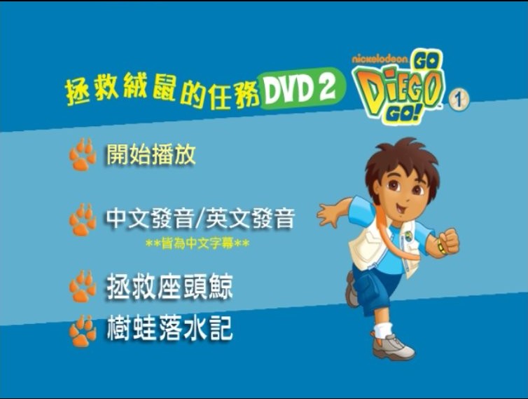 軟體名稱: 卡通:Go Diego Go DVD 第2集(拯救座頭鯨 樹蛙落水記)