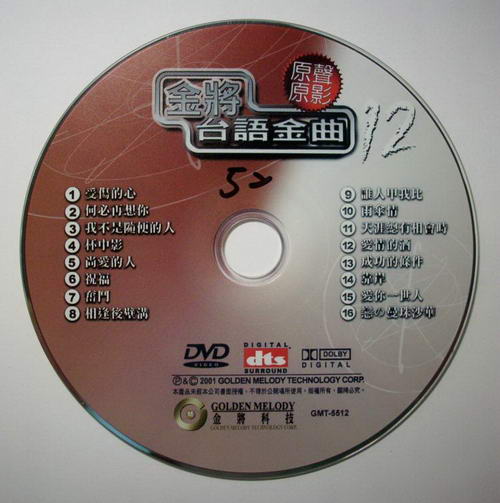 金將台語金曲原聲原影KTV DVD(十二) (dvd一片裝)